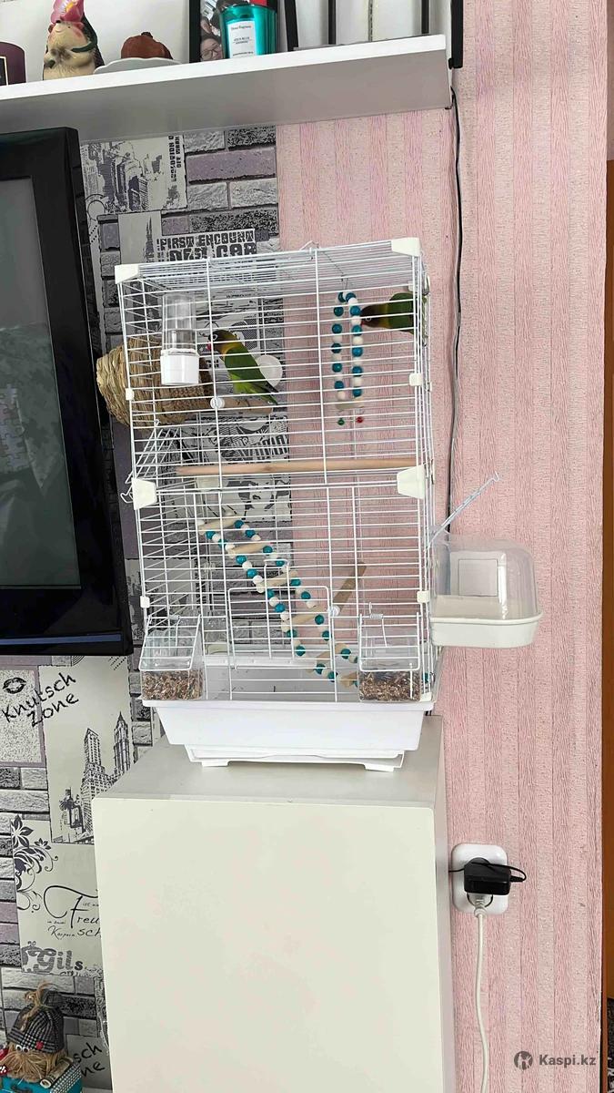 Продам попугаев в месте с клеткой. Попугаи неразлучники 2 месяцев им.