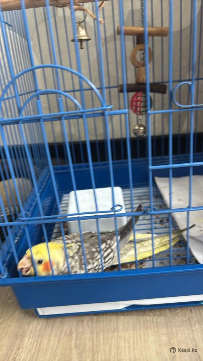 Продам попугая вместе с клеткой, ручной, 3 месяца, озорной