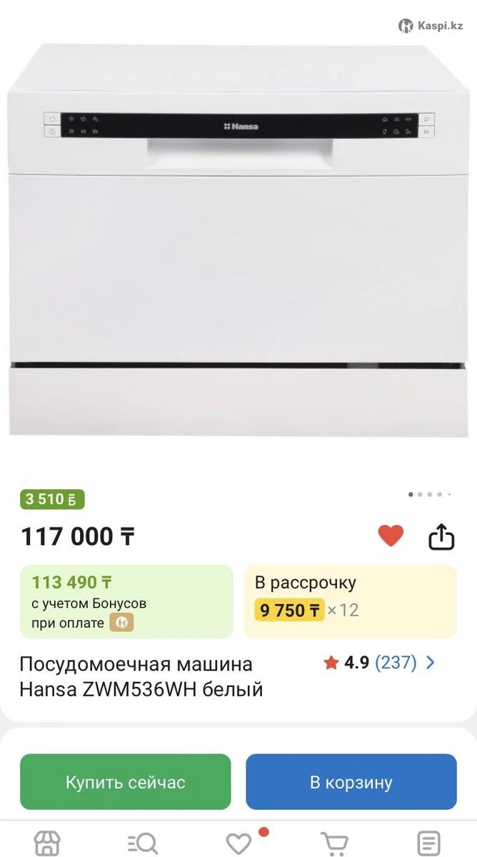 Продам посудомоечную машину , новая в коробке , на гарантии . В каспи магазине стоит 117 тысяч . Торг