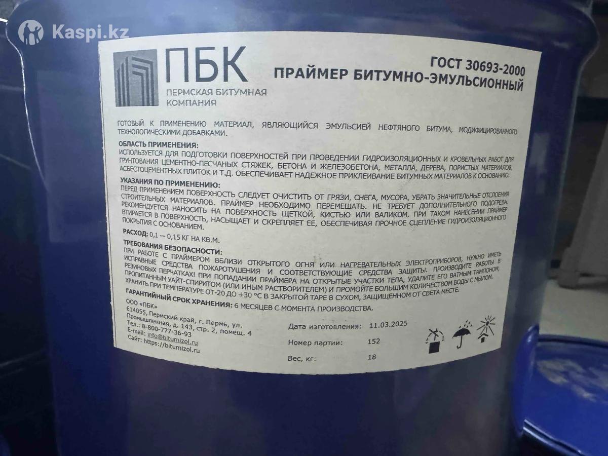 Продам Праймер Битумно- Эмульсионный. Пермская Битумная компания. Дата изготовления 11.03.2025 год Вес 18 кг