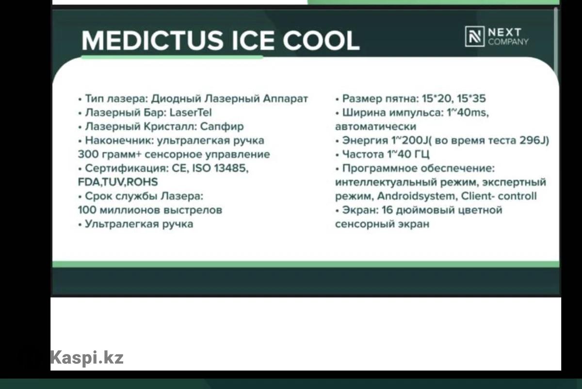 Продам диодный лазер Medicus Ice Cool + кушетка + база клиентов Продам профессиональный аппарат для лазерной эпиляции Medicus Ice Cool в отличном состоянии. Покупали как дополнительную услугу в клинику, использовался редко. Полностью исправен и готов к работе. Преимущества и характеристики: • Мощность: 1800 W • 2 манипулы (работа без простоев) • Ресурс лазера: 100 млн импульсов • Размер пятна: 15×20 / 15×35 • Энергия до 200 J • Частота 1–40 Hz • Сапфировое охлаждение • 16” сенсорный экран • Интеллектуальный и экспертный режим • Сертификация CE, ISO, FDA 🎁 Бонусы: • Пневматическая косметологическая кушетка с подогревом (покупали за 1 000 000 ₸) • Передадим базу постоянных клиентов 💰 Покупали за 7 300 000 ₸ 💰 Цена продажи: 4 600 000 ₸ Подойдет для студии лазерной эпиляции, косметологии или медцентра. 🤝 Возможна рассрочка.