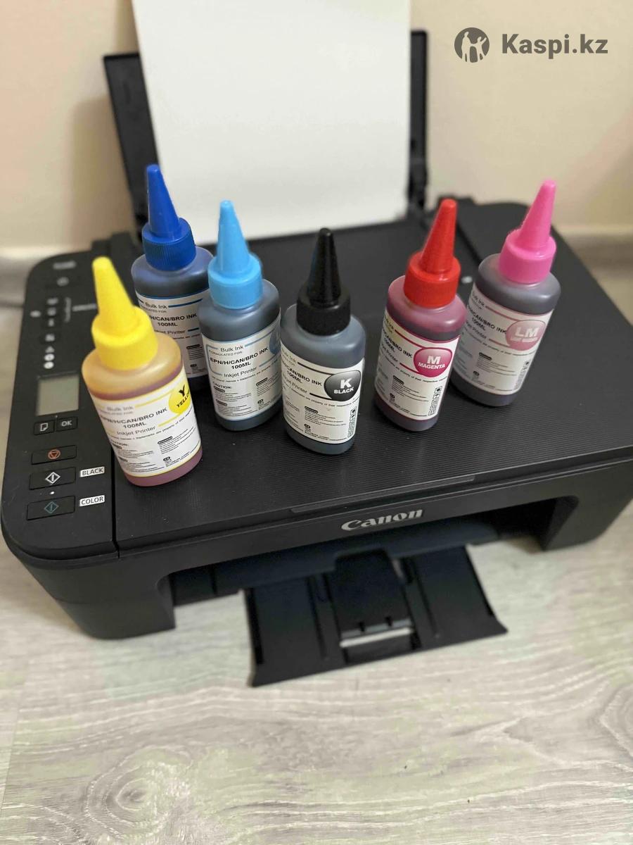 Принтер 3-1. Все работает. Только картридж цветной нужно поменять. Черный картридж заправлен. + Бумага а4 + Чернила 6 штук. Все отдам за 30 без торга. Новый стоит 85 тыс. Работает через Wi-Fi. Кабеля нет.