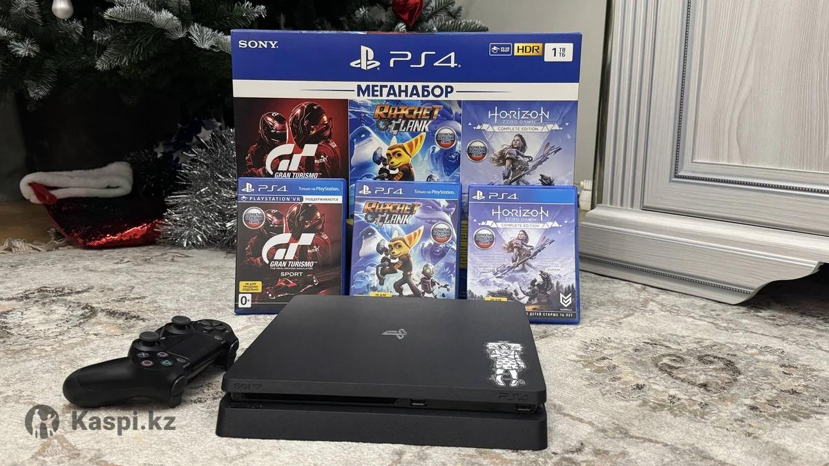 Продам PS4 в отличном состоянии, без прошивки, всё в оригинале: коробка, три игры, провода.