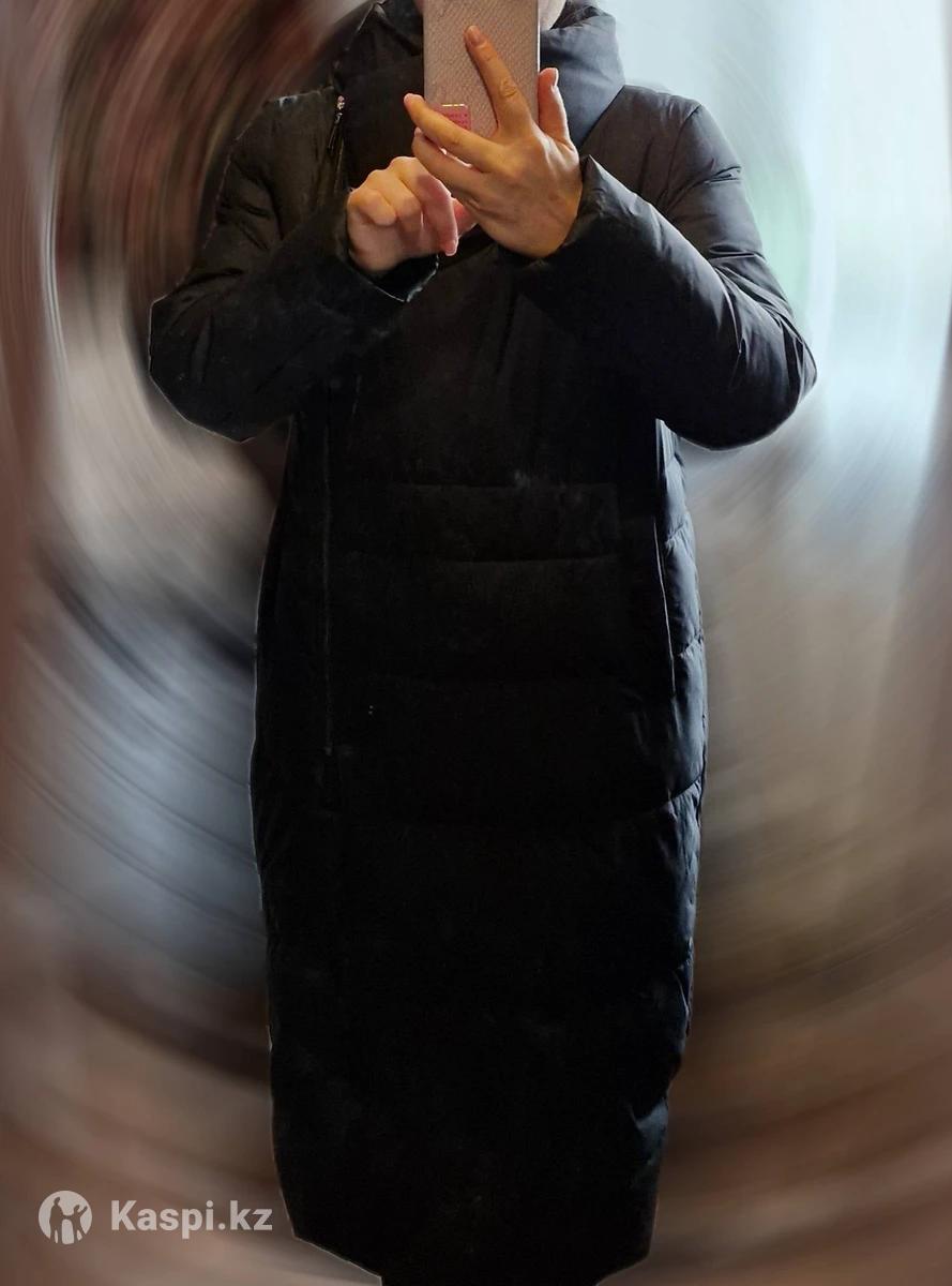 Пуховик черный в отличном состоянии,застежка по типу "халат" .Размер подойдет от 46 до 50