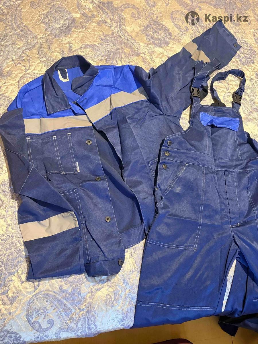 Продам 3 комплекта новой с этикеткой рабочей одежды. Цена 1 комплекта 5 000 тенге. Цвет синий. Куртки есть на замке или на кнопках. Брюки обычные или на лямках. Размер М или L, 46, рост 170. Торг возможен