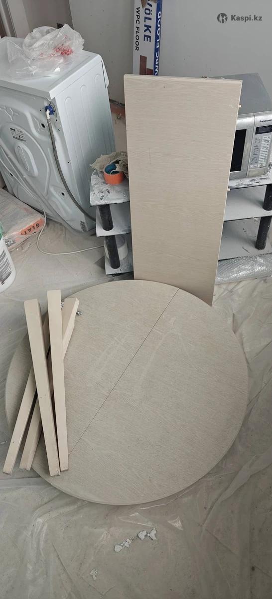 Продаем распашной стол в хорошем состоянии. Диаметр стола 1 метр в закрытом состоянии и 1,4 метра в распахнутом. Продаем в связи с ремонтом в разобранном состоянии. Стол в хорошем состоянии, кое-где нужно подмазать краской