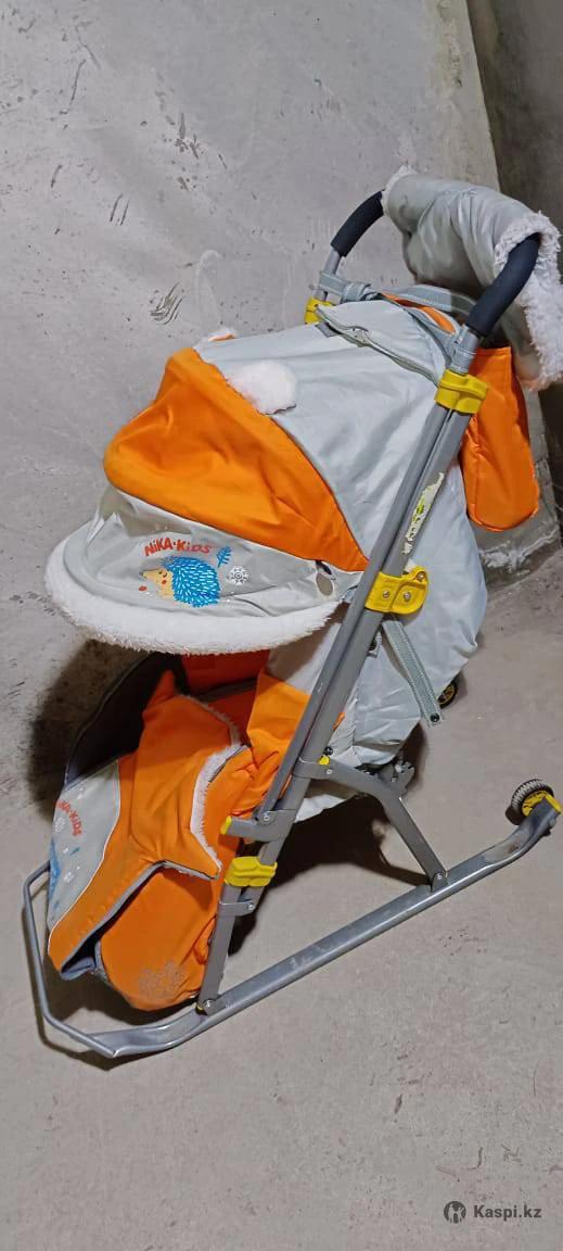 Продам санки Ника в отличном состоянии. Есть муфта, а также сумка для вещей. Спинку полностью, можно опустить, во время сна ребенка. Очень теплые. Есть пластиковая защита от снега и ветра. Очень глубокий капюшон. Колеса только задние. 35.000 тг.