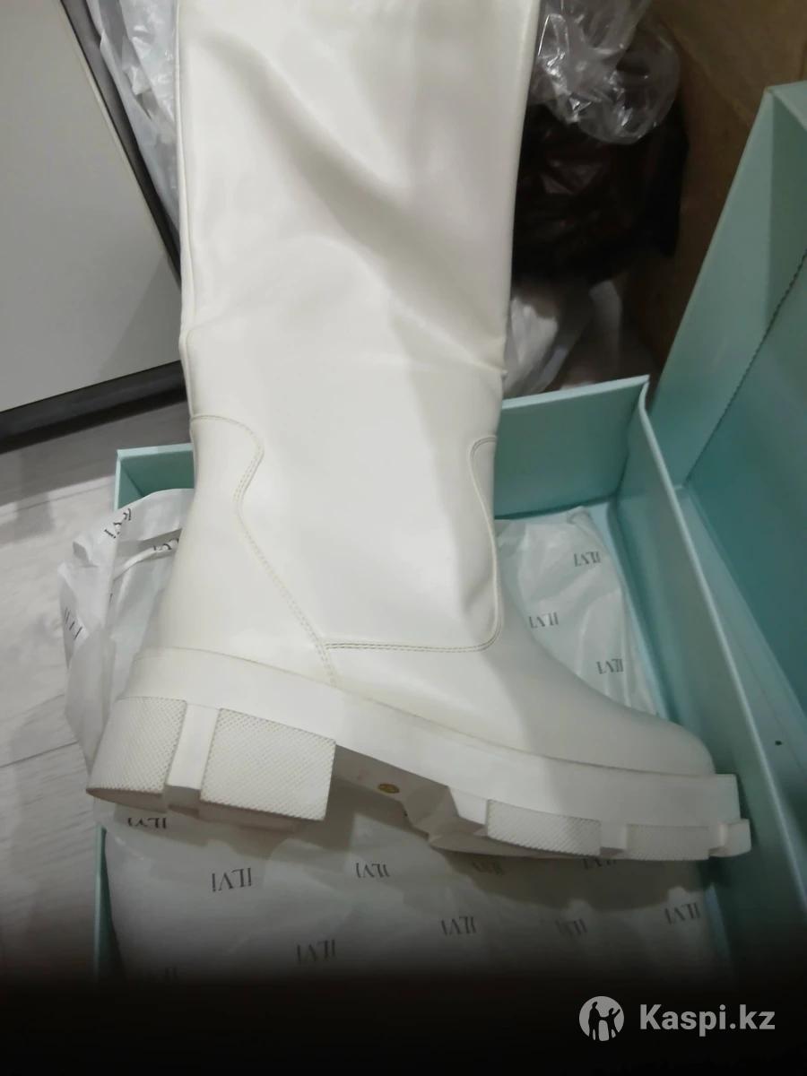 Белые сапоги европейка,мех овчина,размер 37-38подойдет.