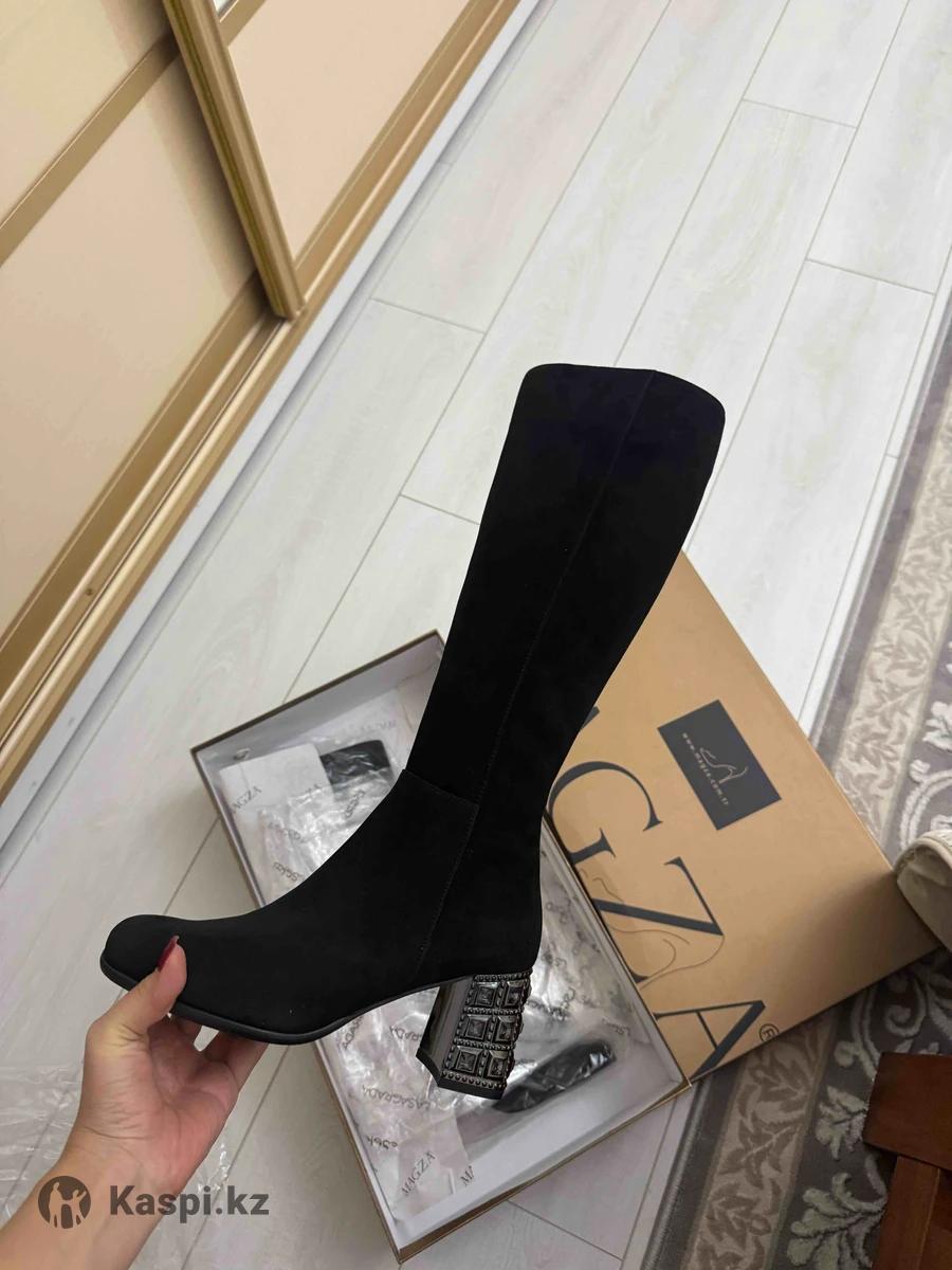 Замшевые сапоги на каблуках