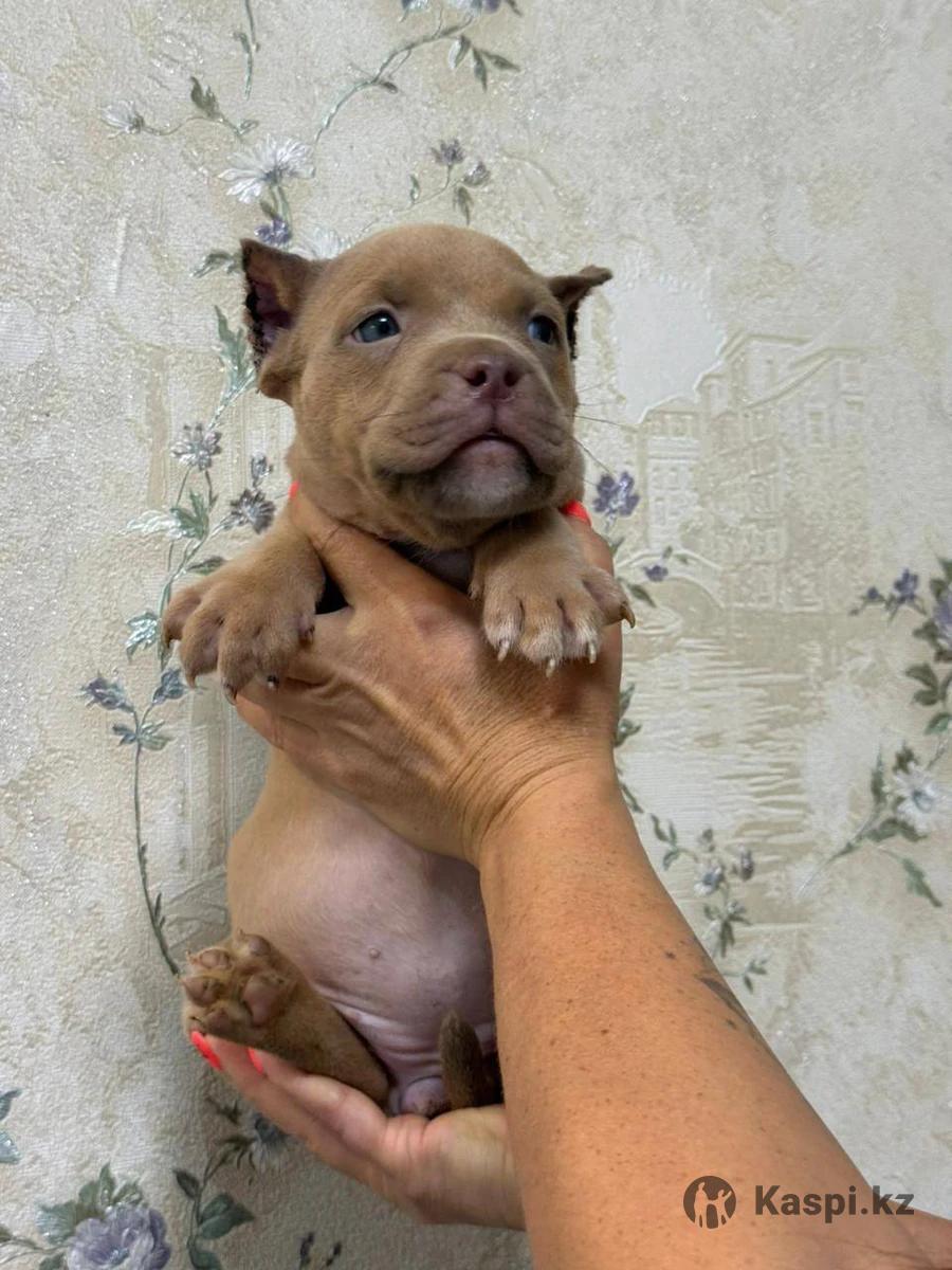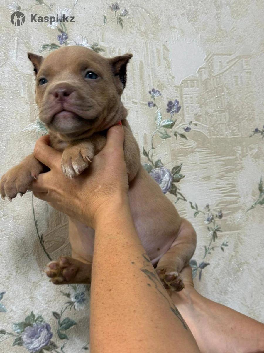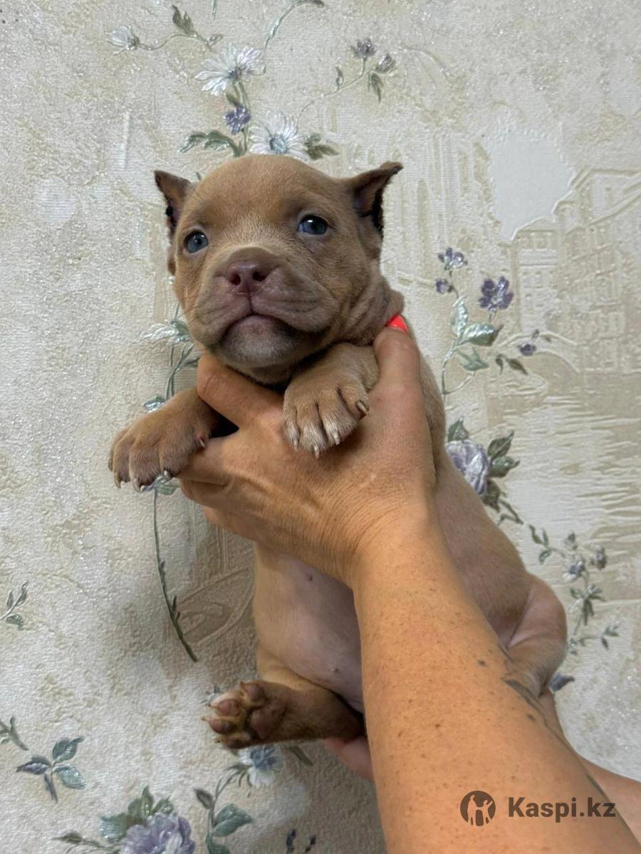 Продам щенка американского булли девочка 1,5 мес привита ушки купированы возможно доставка по казахстану
