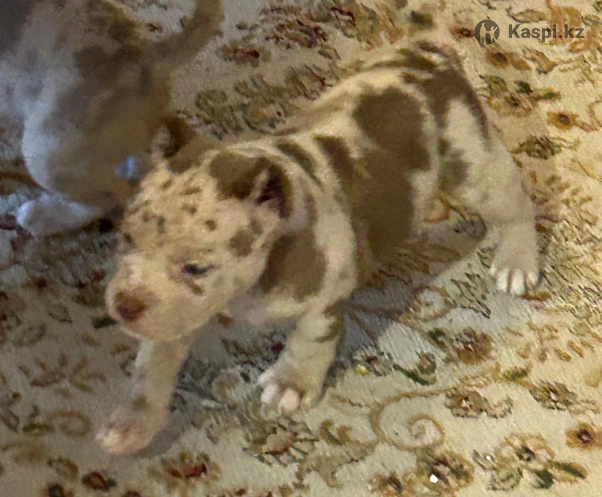 Продам щенков американский булли возраст 1,5 мес уши купированны окрасы мерль и палевый возможно доставка по казахстану