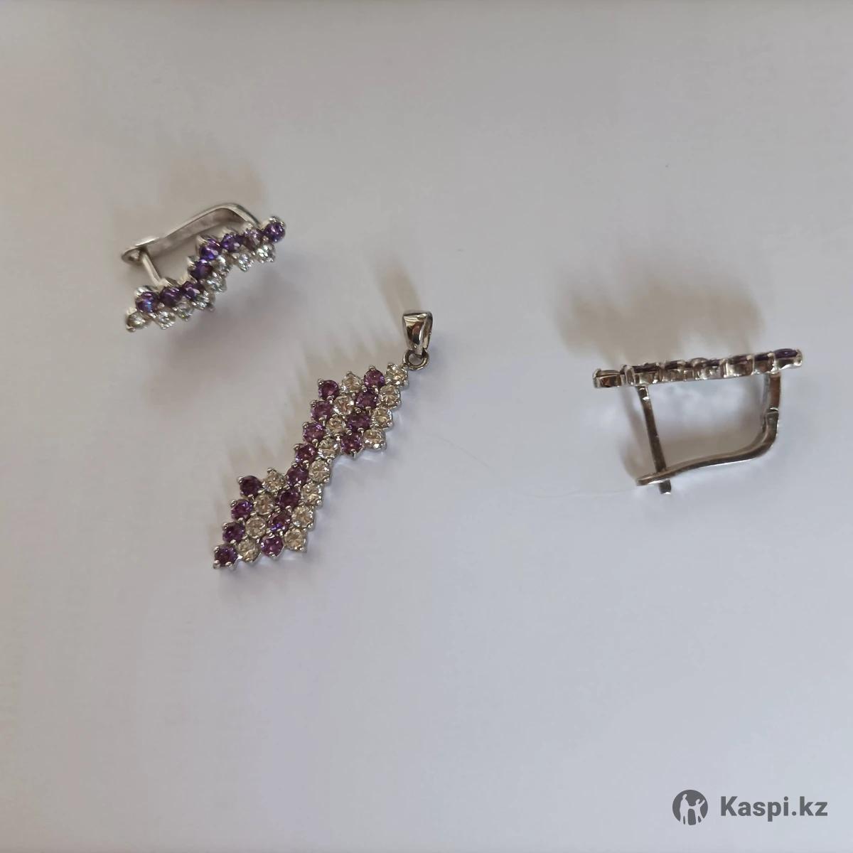 Продам серебряные женские украшения. 1) Кольцо серебряное, размер 18 Камень: агат Проба 925 Цена 5000 тенге 2) Серьги и подвеска Серебро, застежки в порядке. Очень красиво смотрится комплект с нежными сиреневыми камнями. Камень: цирконий Проба 925 Цена 9000 тенге. Все украшения в хорошем состоянии,. Звоните, пишите Самовывоз, мкрн.Коктем 1 прошли проверку у ювелира.