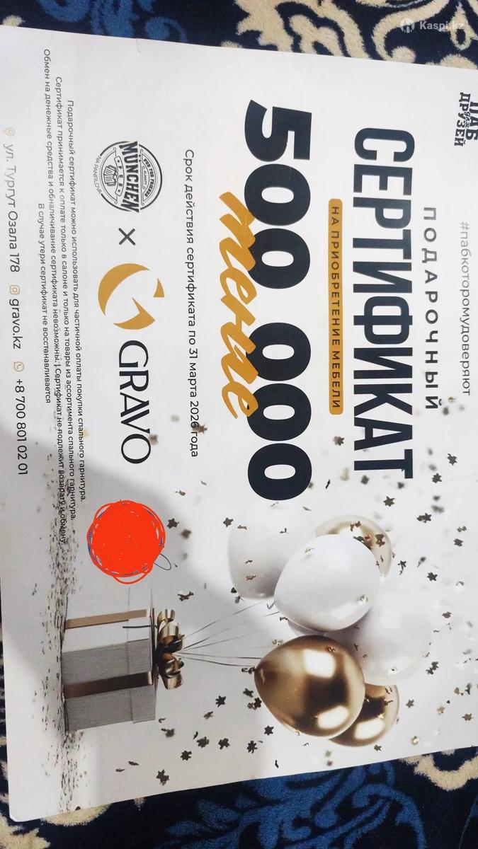 Продам сертификат на сумму 500.000 На спальню фурнитуру