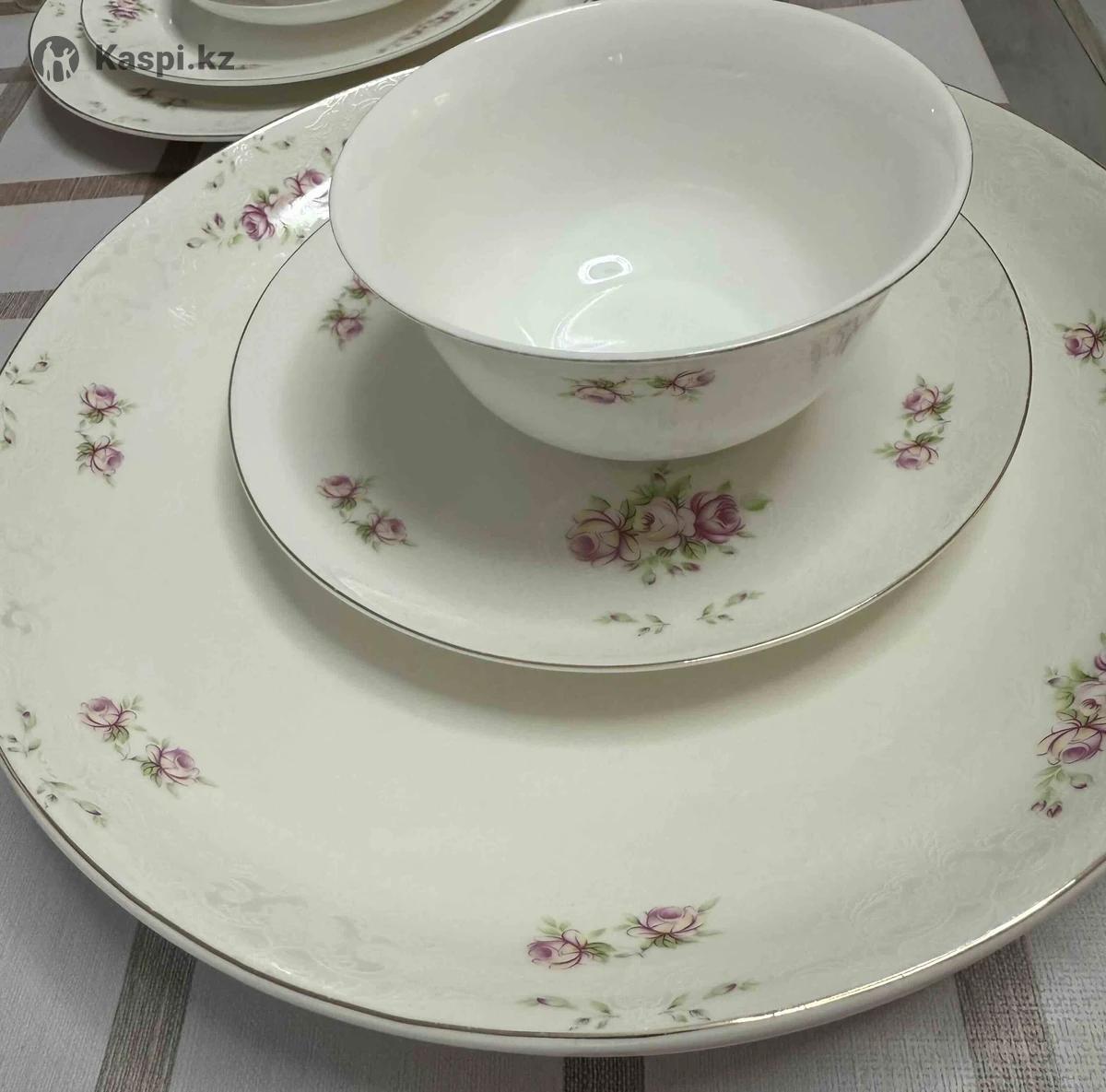 Продам сервиз на 12 персон, активно пользовались только тарелками персональными и пиявками Остальное, как новое: 12 шт подтарельников 12 шт персоналки 12 шт еще персоналки 12 шт чайных пар (чашка+блюдце) 12 шт сорпа кесе 12 шт чай кесе 2 шт бешбармак табак 2 шт куырдак табак 2 шт овальные тарелки под холодное 1 шт молочница 1 шт сахарница
