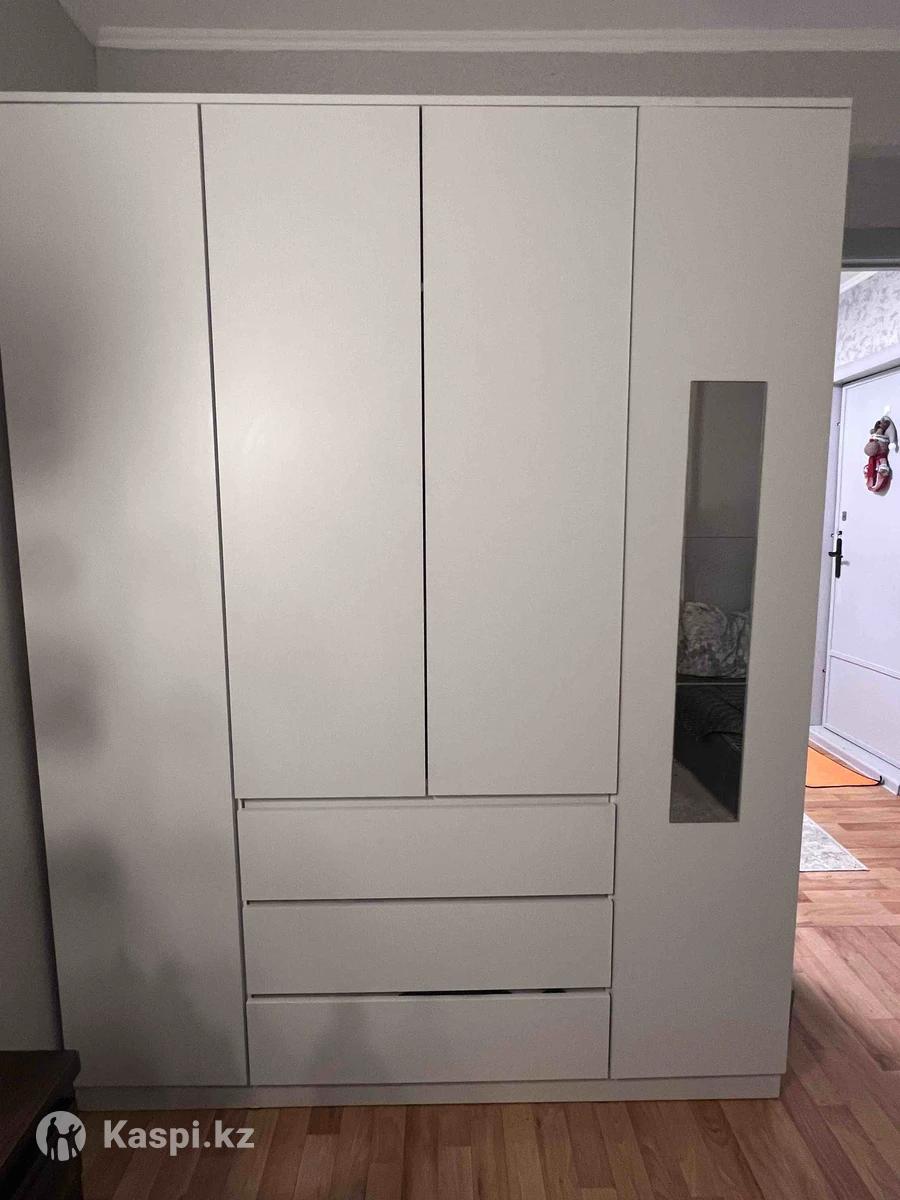 Стильный шкаф для вашего дома! Белый шкаф в отличном состоянии, аккуратный и удобный. Большое отделение для одежды, полки, три глубоких ящика. Подходит в спальню, детскую или прихожую. Самовывоз, район 9 мкр Ширина: 160 Глубина: 52 Высота: 210 Писать/звонить в :