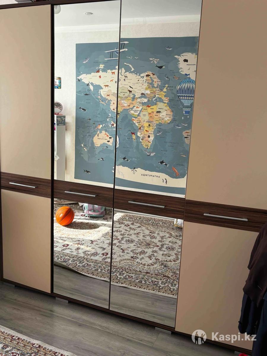 Продам шкаф для одежды в хорошем состоянии. Шкаф большой, четырехдверный, вместительный. С зеркалами. Высота 220, глубина 55, ширина 205-207. По бокам отсек. С полками, посередине плательный шкаф, с полками с верху и снизу. Стоимость 85000 тенге
