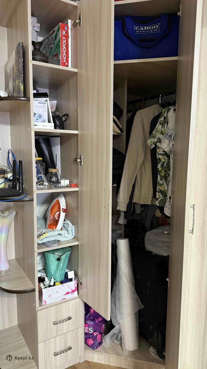 Продам шкаф угловой с зеркалом во весь рост. Шкаф в отличном состоянии, очень вместительный и функциональный. Цвет: ясень шимо светлый Материал: ЛДСП Размер: Высота: 220, глубина боковых шкафов: 50 см, ширина: 160 см Цена: 50 000 тг Самовывоз