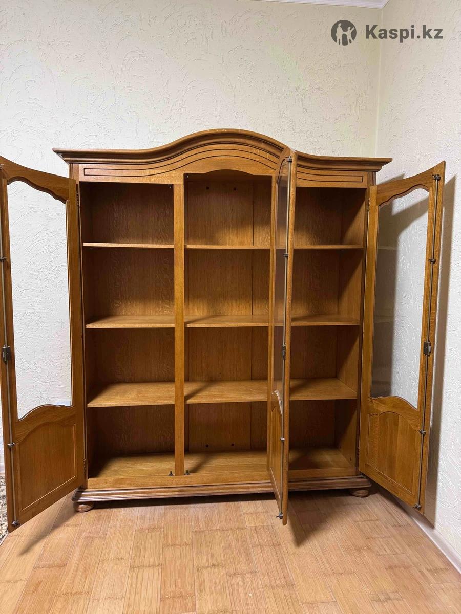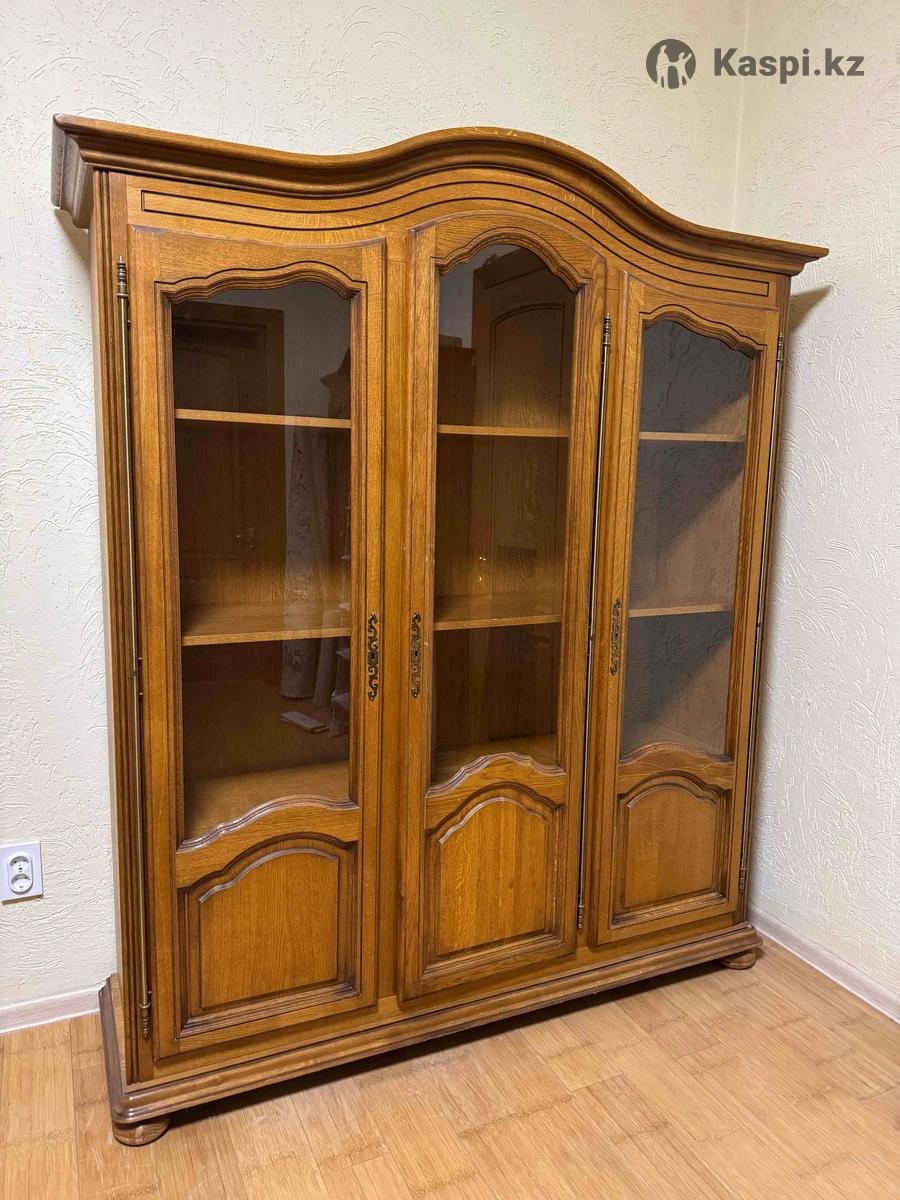 Дубовые шкаф-витрина премиум-класса 3 штуки Классический шкаф из натурального дуба: фасады и карниз — массив, корпус — дубовый шпон. Стеклянные двери, качественная фабричная сборка, отличное состояние. Вместительный и устойчивый. Идеален для гостиной, кабинета или библиотеки. Самовывоз.