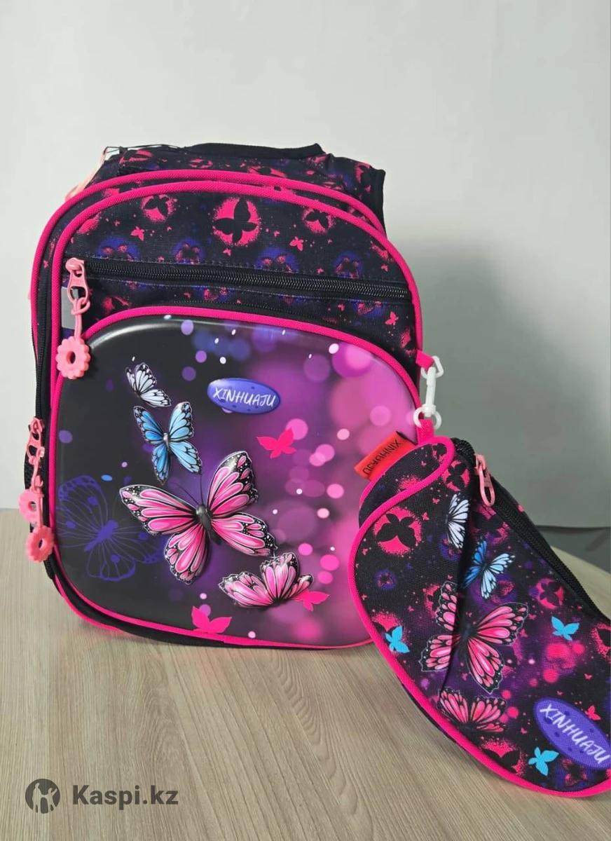 Верхняя часть рюкзака выполнена из жесткого глянцевого материала с 3D-изображением (бабочки). Школьный рюкзак для девочек с ортопедической спинкой разработан для равномерного распределения веса, снижая нагрузку на спину и для поддержания правильной осанки и предотвращения искривлений позвоночника. В него помещаются тетради, учебники и папки формата А4. По бокам расположены два удобных сетчатых кармана для бутылок с водой или других школьных принадлежностей. Рюкзак рассчитан для детей ростом не более 140 см.