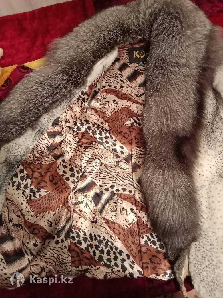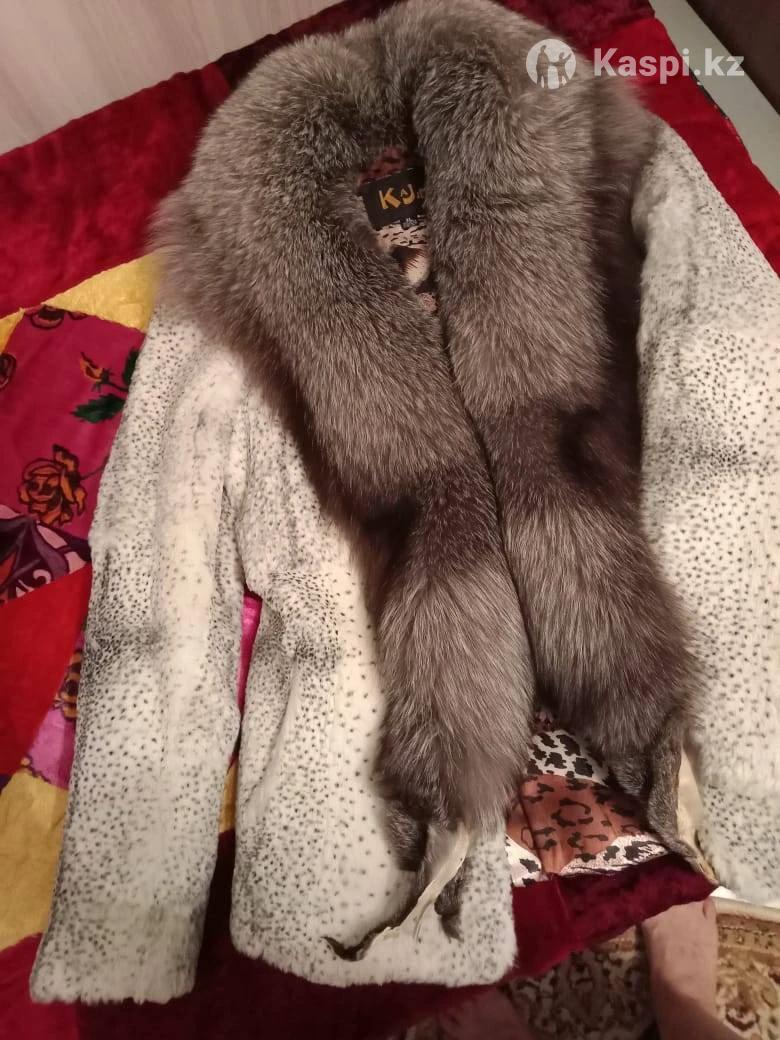 Шубка белая короткая из кролика, воротник чернобурка