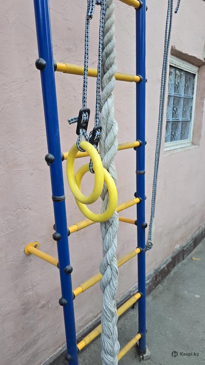 Продам детскую шведскую стенку. Подходит для использования как внутри помещения, так и на улице. Включает в себя турник, лестницу, канат, канатную качелю и кольца. Качественная. Мало пользовались, в хорошем состоянии. Самовывоз из Алатауского района. Возможен небольшой торг