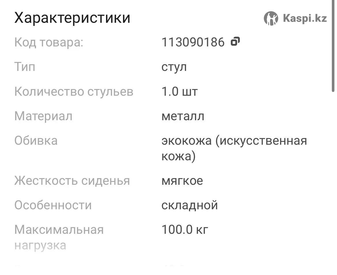 Продам складные стулья в отличном состоянии. В наличии 3 штуки. Самовывоз. Каждый стул по 8000 тг. По всем вопросам писать!(не звонить) на .