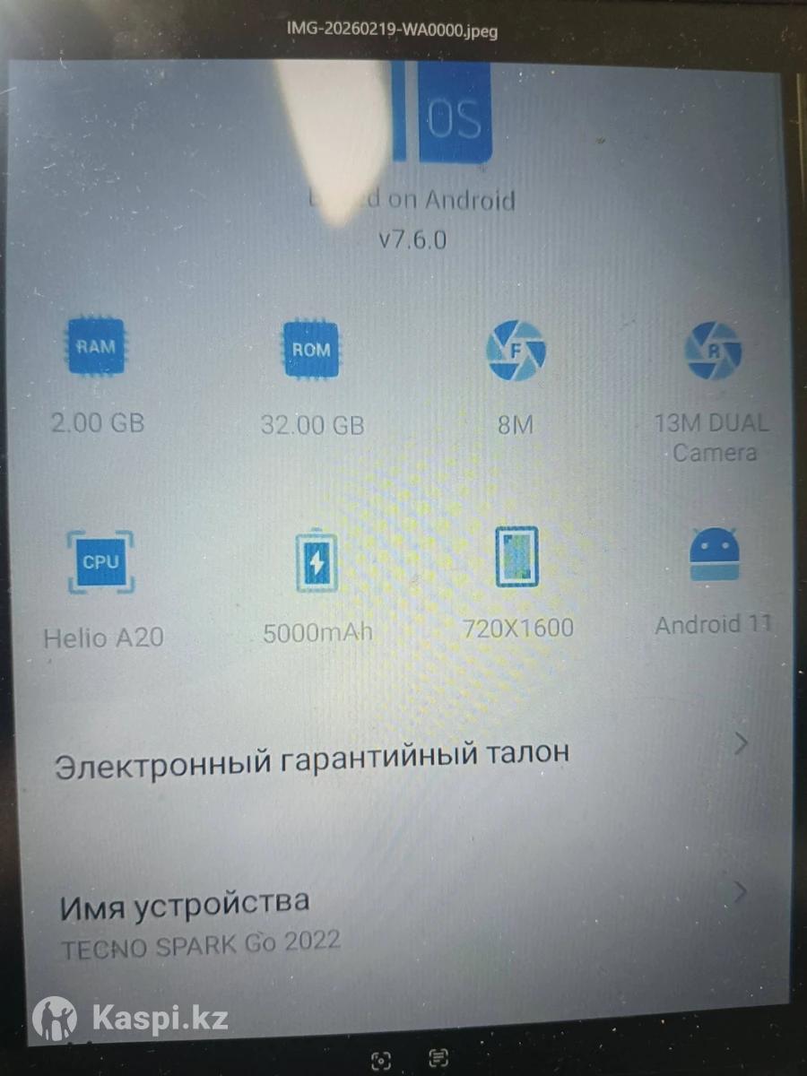 Продам смартфон Tecno Spark go 2022 в отличном состоянии. Камера 13 МП dual, 500mAh, 720x1600, android 11