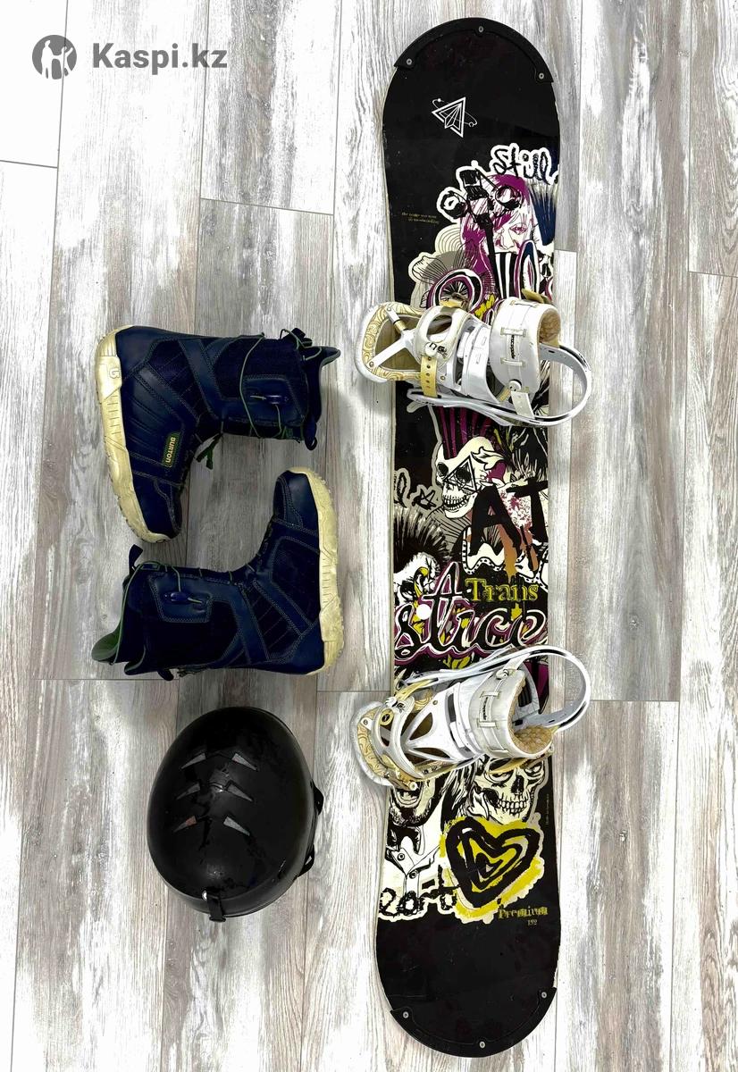 Продам сноуборд в полной комплектации от популярного производителя в сфере сноубординга Burton Состояние комплектации отличное, отличный вариант как для личного использования так и для подарка Доска на рост от 160 до 180, канты и скользяк в отличном состоянии, установлены бампера что убережет доску от столкновений. Доска универсальная, подходит под все стили катания, от простых спусков до рестайлинга, карвинга и фрирайда. Доска двухсторонняя, подойдет как левше так и правше Крепления на ногу от 37 по 44 размер ботинок, елочки в отличном состоянии, крепления не люфтят, сидят плотно. Ботинки на плотной шнуровке, размер 40-41 сидят отлично, нога внутри не болтается Шлем размера с регулировкой подходит почти на любую голову Весь комплект подойдет как новичку так и профи При приобретении любые проверки, так же возможна доставка Успейте приобрести по низкой цене Обращайтесь в любое удобное время суток