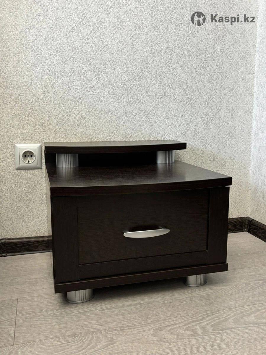 Продам кровать, размер 160×200, без матраса, ножки 15 см, робот пылесос спокойно проходит, тумбочки 2 шт, комод с зеркалом, в темном цвете, состояние отличное!