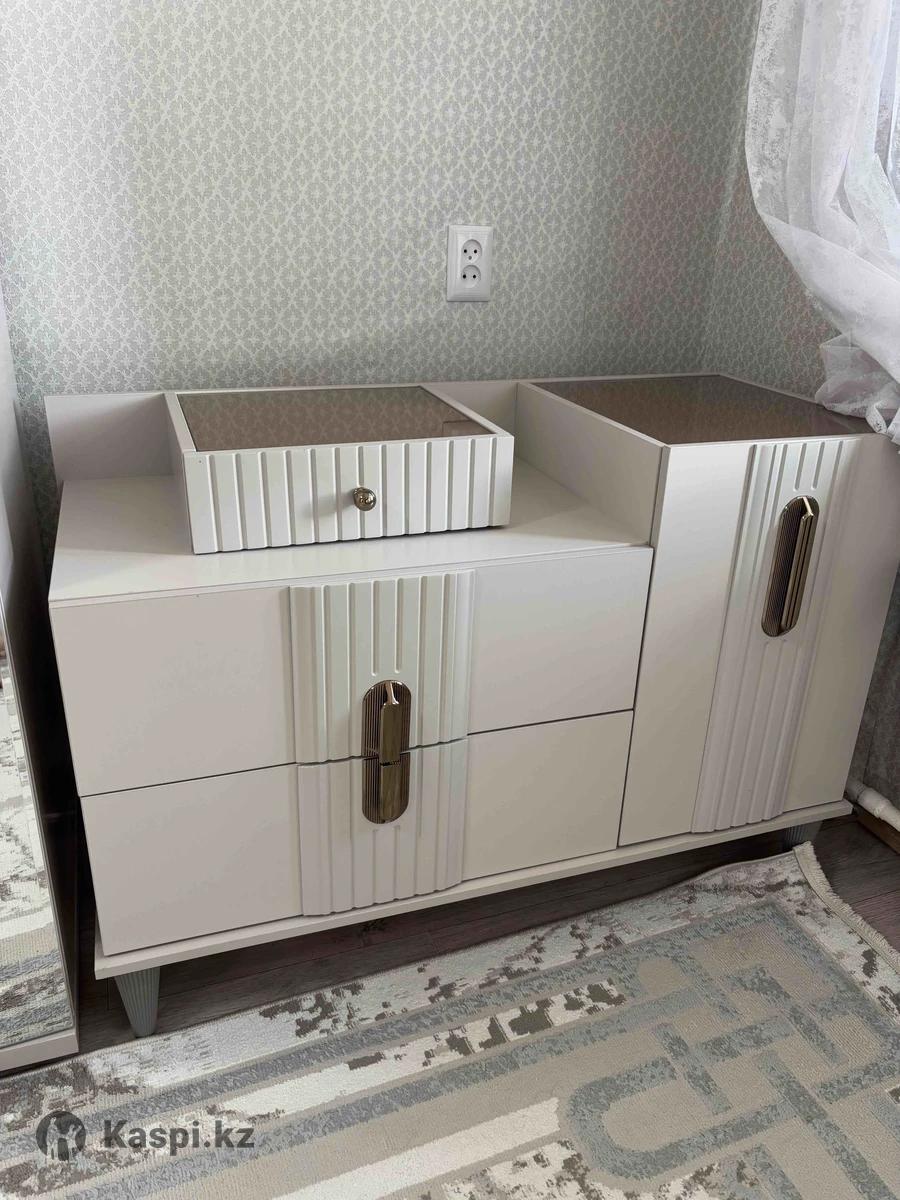 Продам спальный гарнитур в хорошем состоянии. В комплекте кровать двуспальная, 1 тумба, туалетный столик и шкаф. В сером цвете.