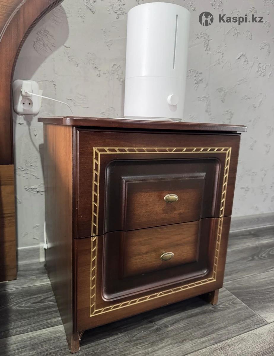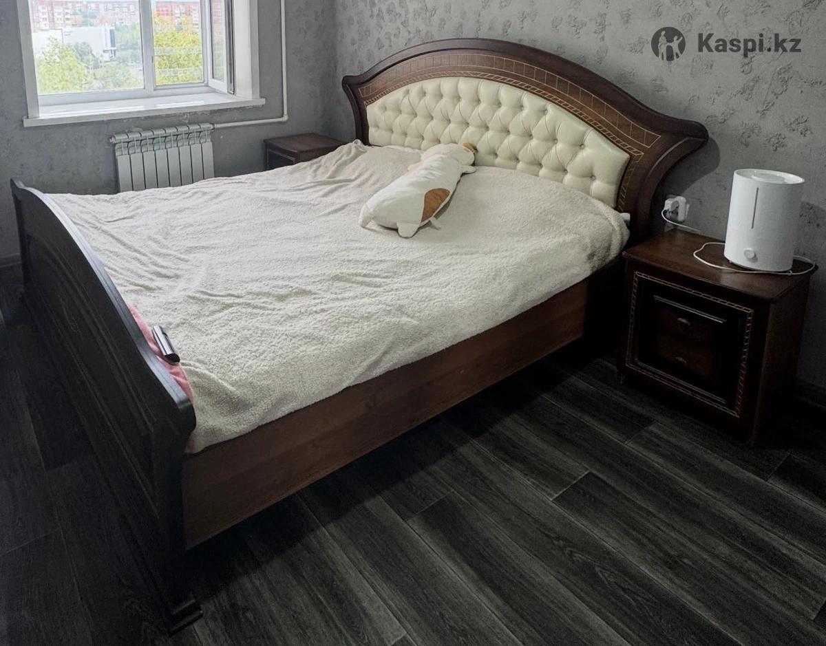 Спальный гарнитур в классическом стиле с декоративной инкрустацией. В комплект входит: Двуспальная кровать с мягким изголовьем (обивка светлая, спустя время потрескалась, можно перешить) 200220 Вместительный шкаф с распашными дверями и зеркалами 2 прикроватные тумбы 1 комод (полки надо будет подтянуть) Характеристики: Цвет: темный орех / коричневый Стиль: классика Шкаф с большими зеркалами визуально увеличивает пространство Кровать прочная, устойчивая, с высоким изголовьем Тумбы с выдвижными ящиками Состояние: хорошее (без сколов и серьезных повреждений) Гарнитур выглядит дорого и аккуратно, отлично подойдет для спальни в классическом или неоклассическом интерьере. Причина продажи - переезд Забирать самим