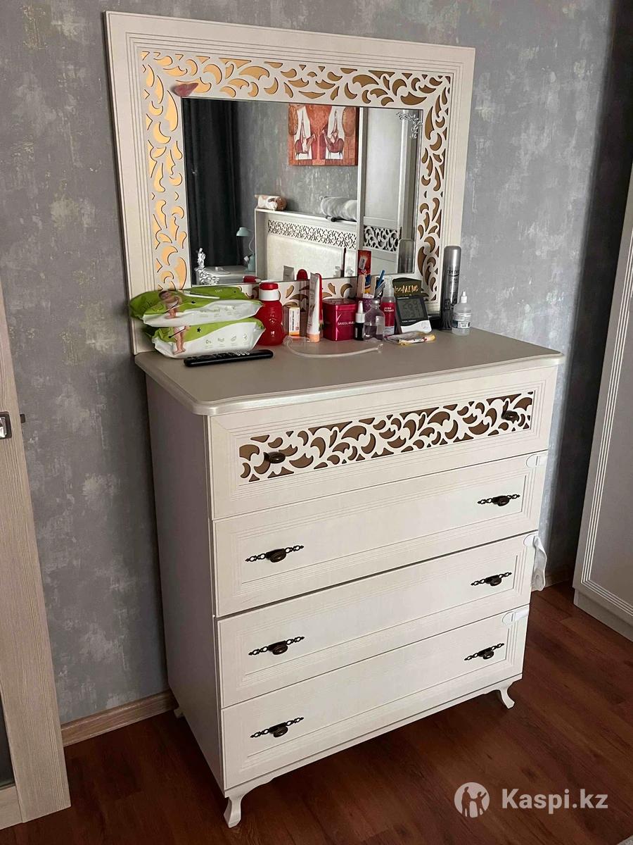 Продаю спальный гарнитур в хорошем состояние , матрас в подарок . Комплект комод , зеркало , две тумбы , кровать ,и шкаф . Кровать 160х200