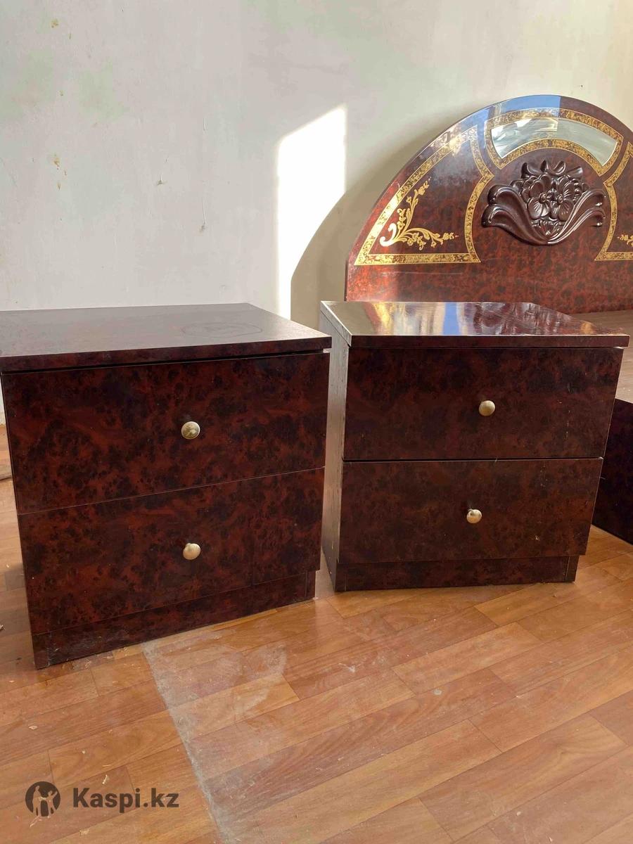 Продам спальный гарнитур кровать, 2 тумбочки, туалетный столик и шкаф , все в отличном состоянии, шкаф разобран все остальное нет, цена за все 90.000тг , если сегодня забираете то за 80.000 отдам . САМОВЫВОЗ.