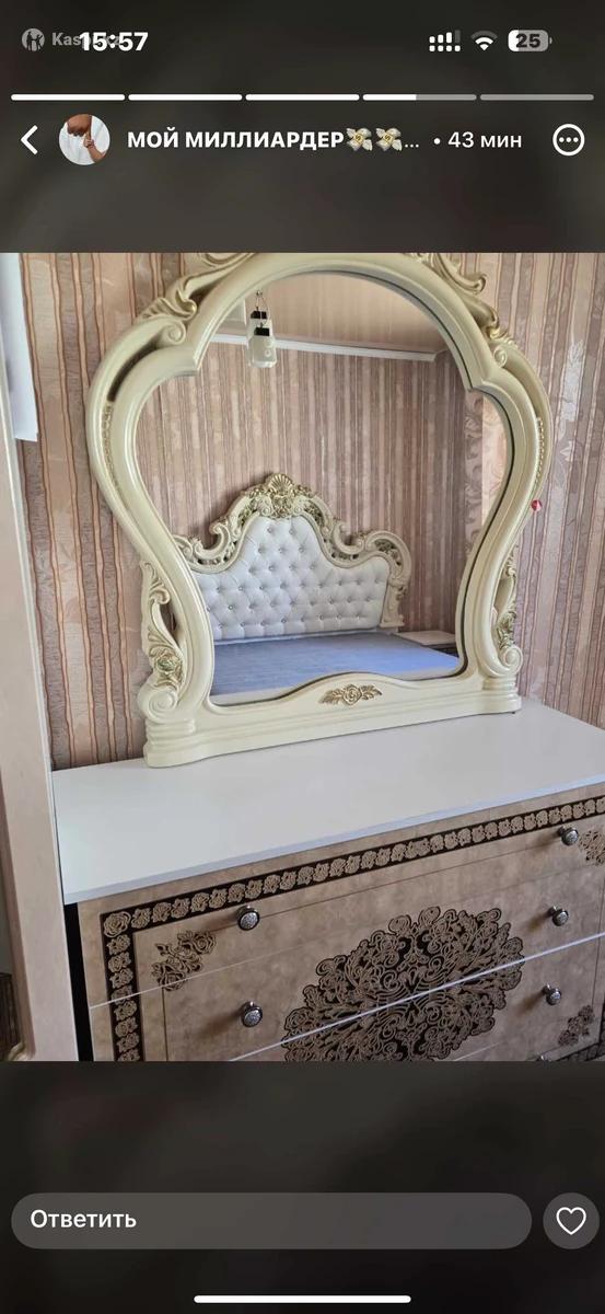 Кровать с матрасом Матрас IKEA (зависимый пружин) Чуть не хватает ширина по краям И надо менять изголовье кожу Прикроватные тумбы Комод с зеркалом (комод сырмасы новый) Шкаф (комплект емес, болек алдык удобный) Приставной детский кровать с матрасом (новый, бала жатпады, жерге кошип кеттик, кроватьпен бирдей высота) Саудаласпаймын барин бир алып кетсениздер лактыруга жалко состояниеси керемет Мы живем в другом доме Барин алып спальнянызды сайлап алсаныз болады👍🏻😍