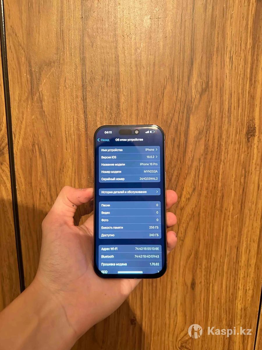 iPhone 16 Pro 256GB В отличном состоянии Face ID True Tone все работает Аккумулятор 100 % Менялся экран на среднее качество В комплекте коробка шнур Все вопросы по телефону