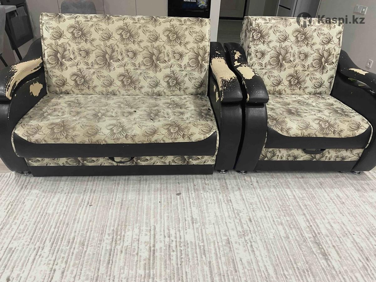 Продам старый диван 148 см и кресло 98 см. Оба раскладываются. Самовывоз.