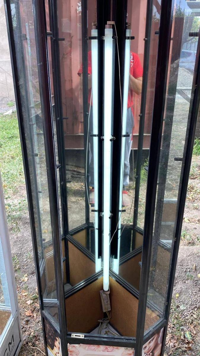 Продам стеклянные витрины.для косметики,лекарств.аксессуаров.Освещение проведено.стекло целые. Высота :белый 1,6м ; черный 2 м