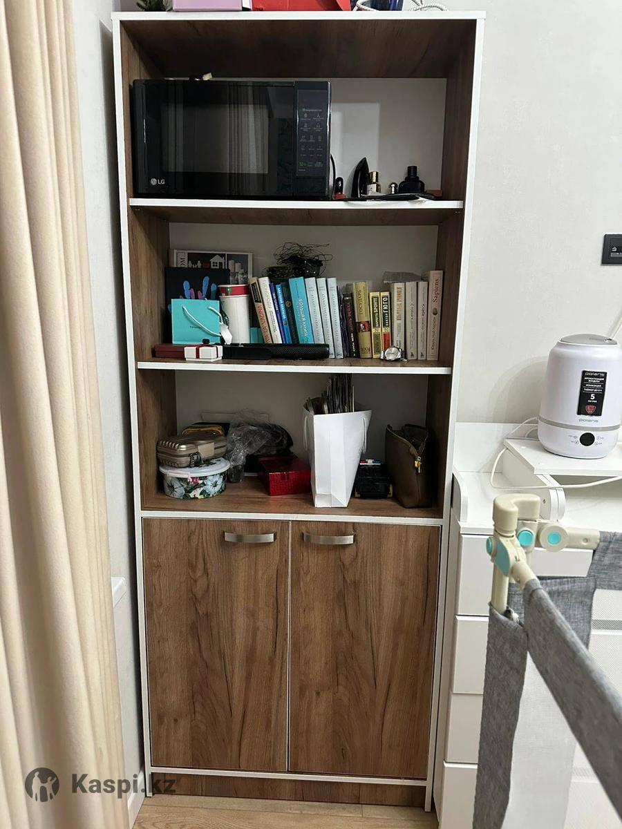 Продам стеллаж параметры : 2008035 Самовывоз Находится в ЖК Qazyn Вообщем 5 полок ,2 за дверью остальные открытые