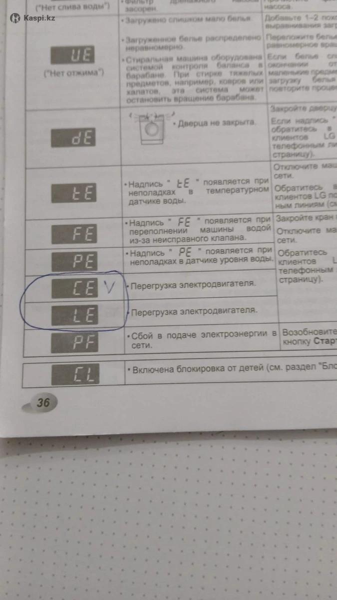 Продам стиральную машинку б/у, стирает, полоскает, но не отжимает, показывает ошибку CE-перегрузка электродвигателя.Самовывоз г.Атырау район Авангарда, 5ый этаж Стоимость 10.000 тг