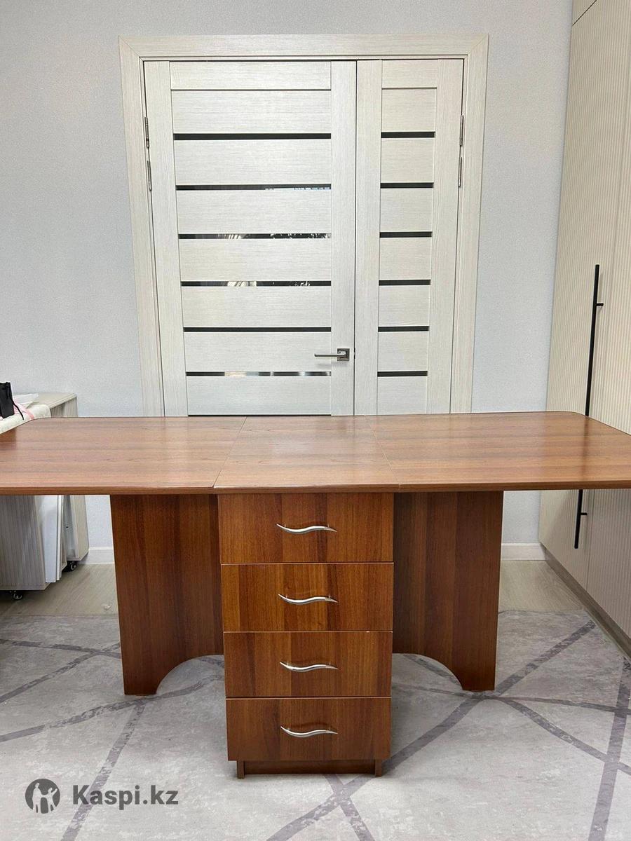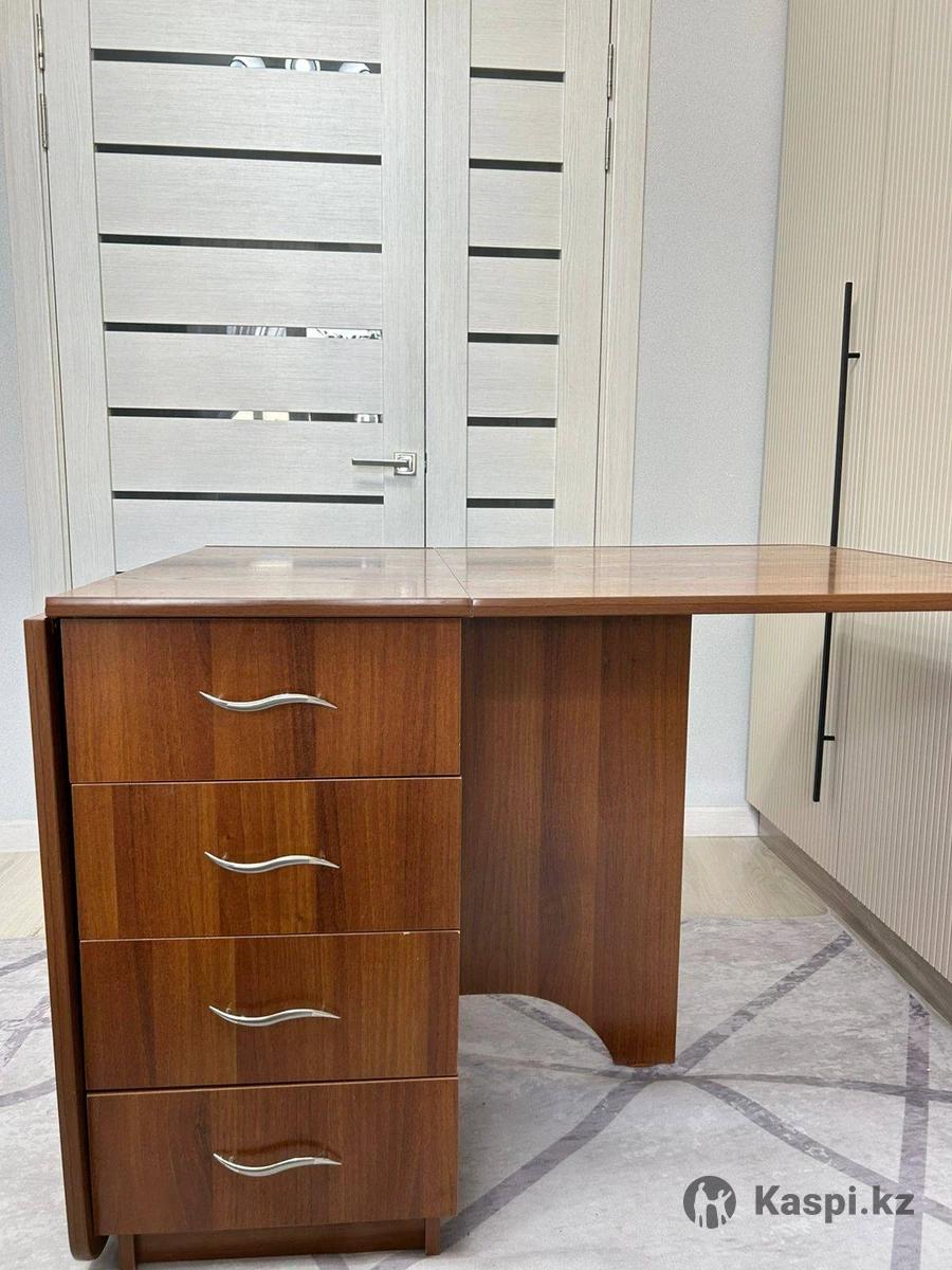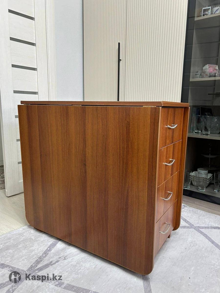 Цена: 15 000 тг (торг уместен) Описание: Стол‑тумба трансформер в отличном состоянии. 📏В сложенном виде: 80×40 см, раскладывается до 80×110 см (одна створка) или до 80×180 см (обе створки). Высота – 75 см. 🗄️С одной стороны – пять выдвижных ящиков, с другой – шкафчик с полками. 📌Удобная мебель 2 в 1 для работы, семейных вечеров или приема гостей.