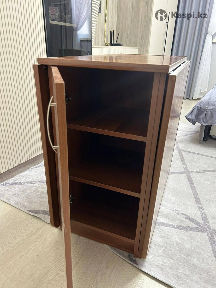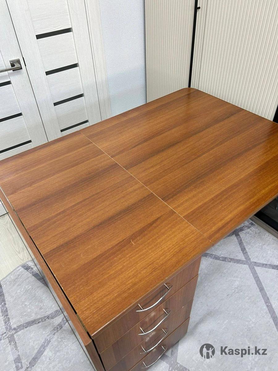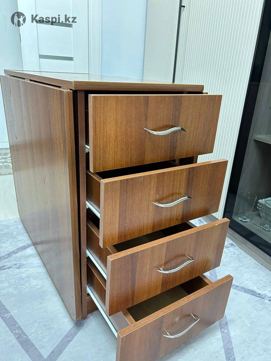 Цена: 15 000 тг (торг уместен) Описание: Стол‑тумба трансформер в отличном состоянии. 📏В сложенном виде: 80×40 см, раскладывается до 80×110 см (одна створка) или до 80×180 см (обе створки). Высота – 75 см. 🗄️С одной стороны – пять выдвижных ящиков, с другой – шкафчик с полками. 📌Удобная мебель 2 в 1 для работы, семейных вечеров или приема гостей.