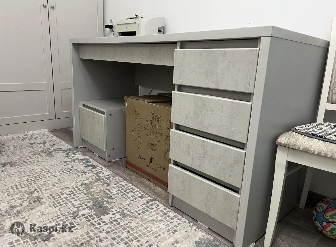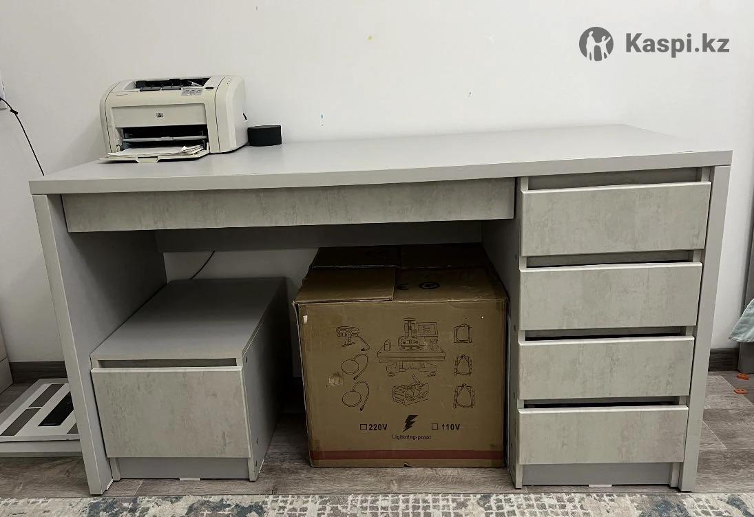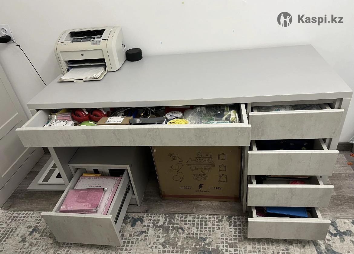 Ширина стола 150 см Глубина стола 62 см Высота стола 83 см Тумба свободная от стола Высота тумбы 38 см Ширина тумбы 40 см Ширина выдвижного скрытого ящика 105 см, высота ящика 11 см Ширина выдвижных 4 ящиков по 38 см Высота каждого ящика 14 см Все замеры внешние. Стол выполнен из дорогих материалов, в хорошей мебельной компании.
