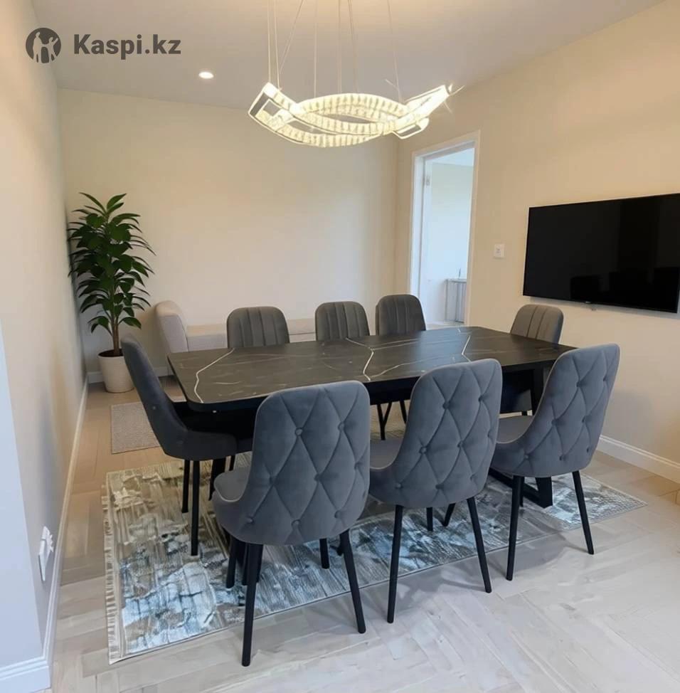 Продам стол размер 180 на 90, и 8 стульев. Обивка велюр серый. Продаем в связи с переездом.