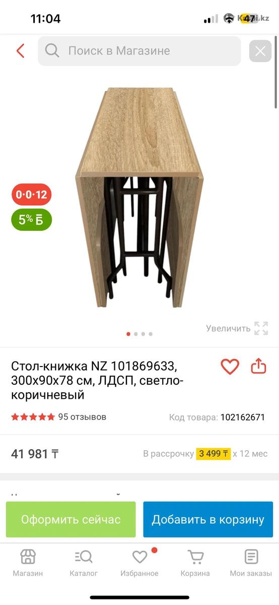 Продам стол книжка, пользовались 1-2 раза, брали на каспи за 41, 4 метра. Не занимает много места, продаем в связи с переездом