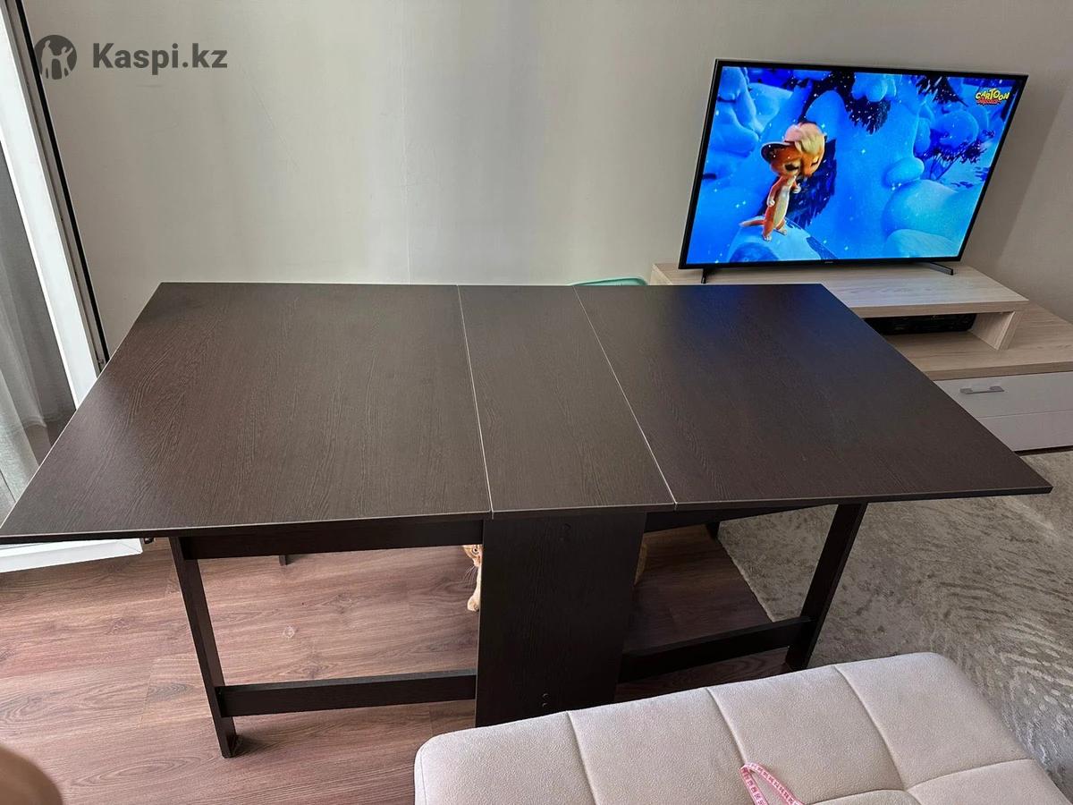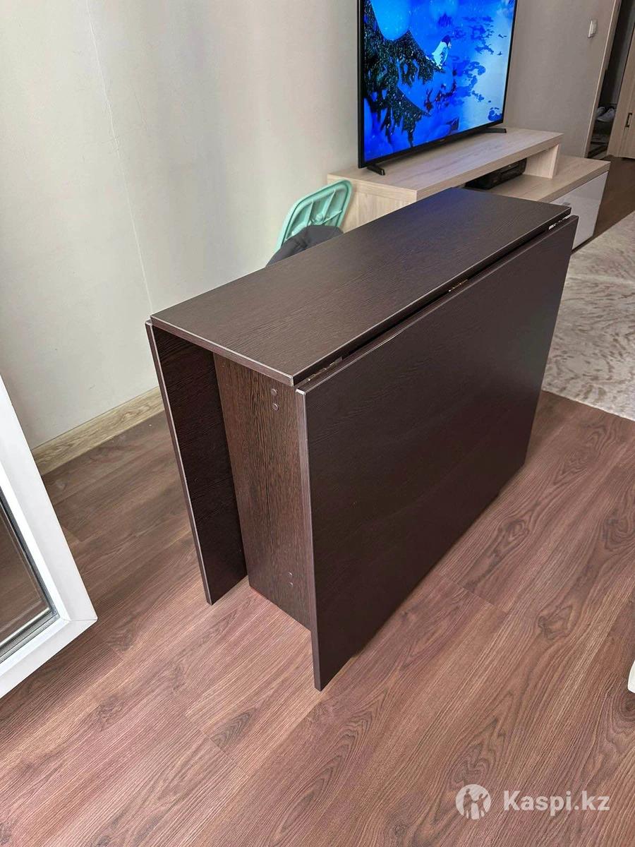 Продаю стол-книжку (б/у). Удобный раскладной стол, который легко трансформируется: в сложенном виде занимает минимум места, а в разложенном — превращается в полноценный обеденный стол. В складном виде 75х34,5, высота 90,5. В раскладном длина 172см. ✔ Цвет: темное дерево ✔ Состояние хорошее, механизм работает исправно ✔ Отличный вариант для кухни, гостиной или дачи