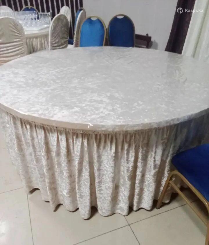 Стол на металлических ножках сьемных,диаметром 180 см с чехлом новым ,в отличном состоянии.12и более посадочных мест.Стол в 1 экземпляре.Есть стулья к нему с чехлами за отдельную оплату.Продажа в связи с переездом.