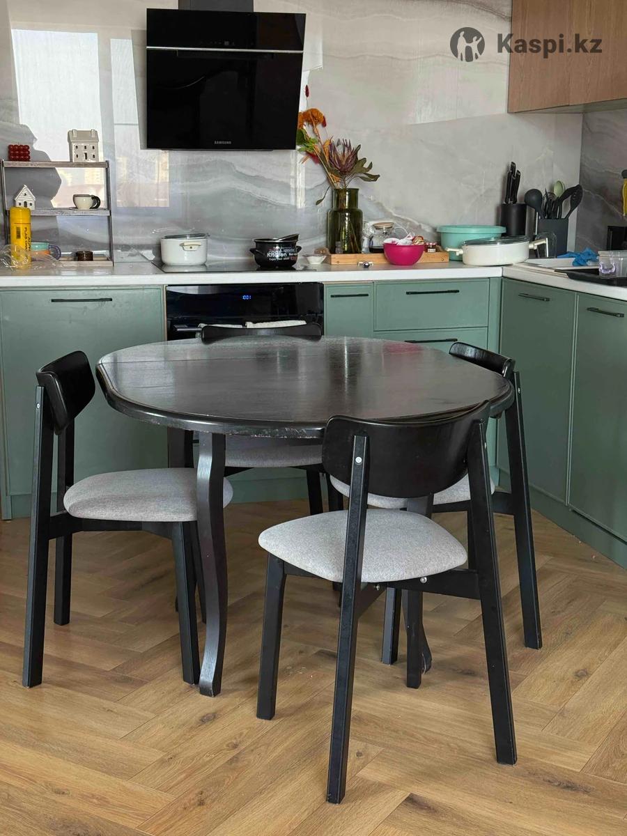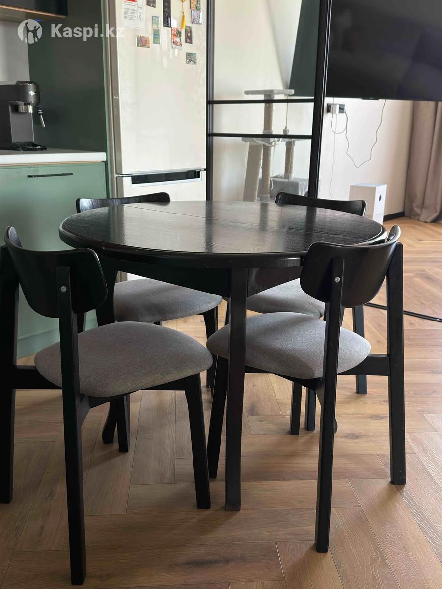 Продаю обеденный стол с раздвижной функцией + 4 стула в комплекте. Стол был в аккуратном пользовании 1 год, состояние отличное. Размер: 100 см в стандартном положении, 140 см при раздвижении — удобно как для ежедневного использования, так и для небольших посиделок. Материал: ЛДСП Цвет: черный Комплект: стол + 4 стула Отличный вариант для кухни или столовой. Самовывоз. Не звонить, только Whas’App