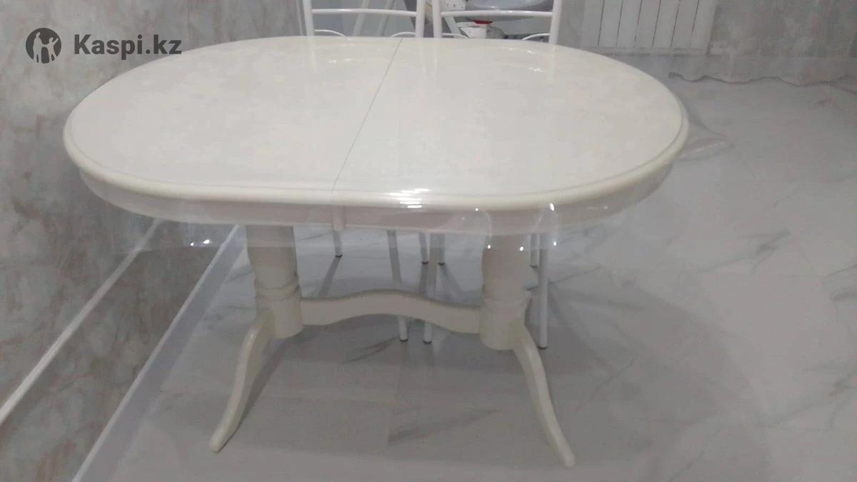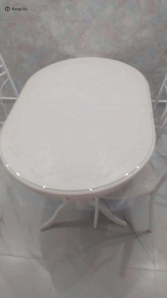 Продам раздвижной овальный стол со стульями с гибким скатертью. В отличном состоянии! Размеры 90 на 120, если раздвинуть еще больше!