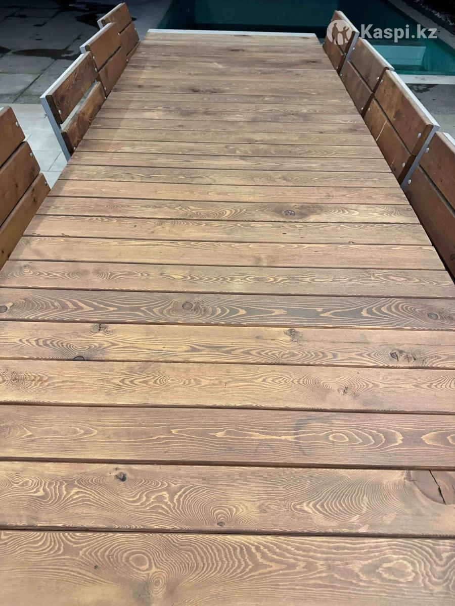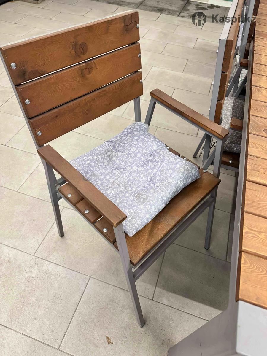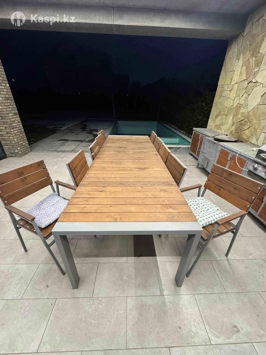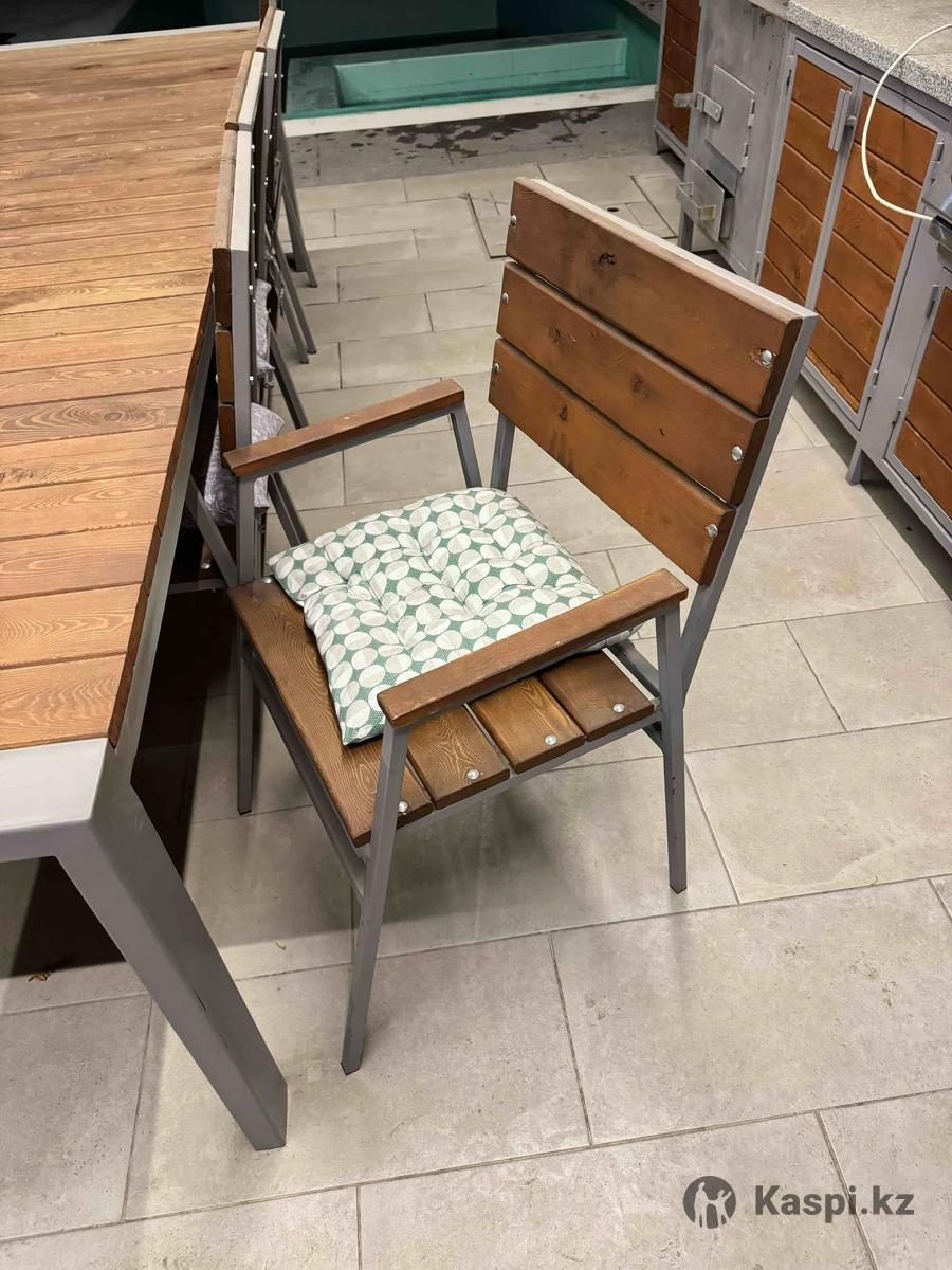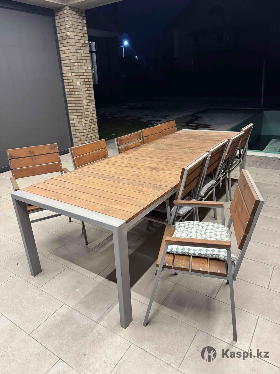 Стол, 10 стульев. Металический каркас, деревянная поверхность, и 10 стульев.