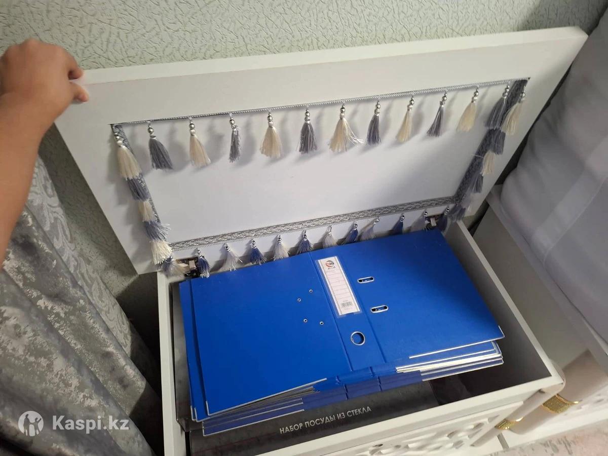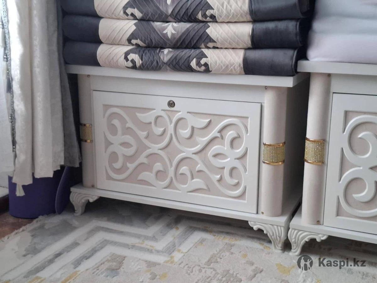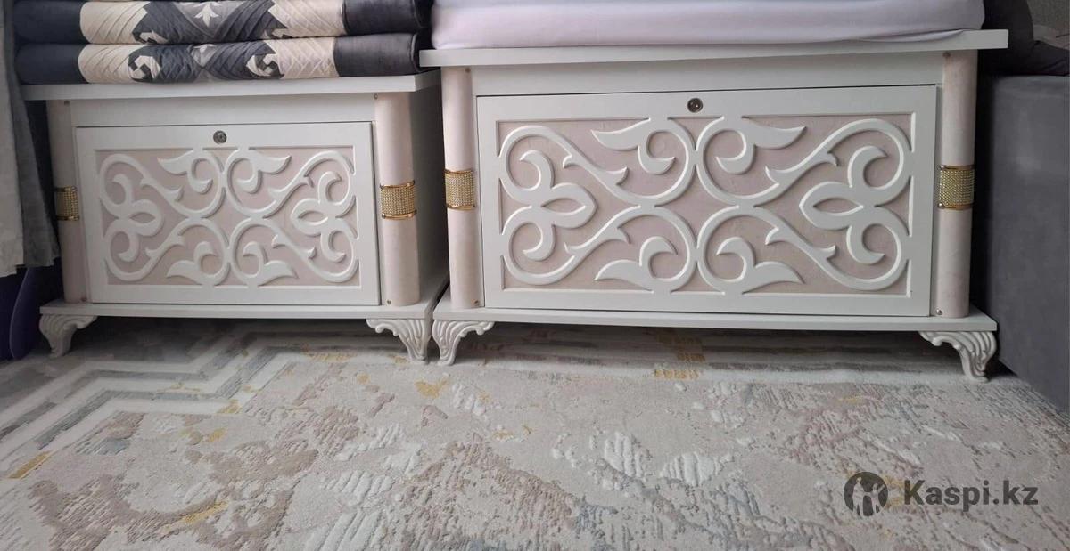 Продаются два красивых сундука (сандък) для дома или приданого (кыз жасауы). Выполнены в современном классическом стиле, цвет — белый (слоновая кость) с изящной резьбой и золотистыми декоративными вставками. Преимущества: Состояние: Отличное (как новые). Дизайн: Объемные узоры, фигурные ножки, смотрятся очень богато. Назначение: Идеально подходят для хранения корпе, постельных принадлежностей или в качестве декора в гостиную. Материал: Качественный МДФ, устойчивая конструкция.